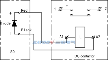 Used to eliminate the back electromotive force interference during the instantaneous energization of the coil of a DC contactor.